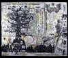 Chiapas 1999 - Mixed-media collage, prints, and painting with cotton and ash on thrift store painting (2025)