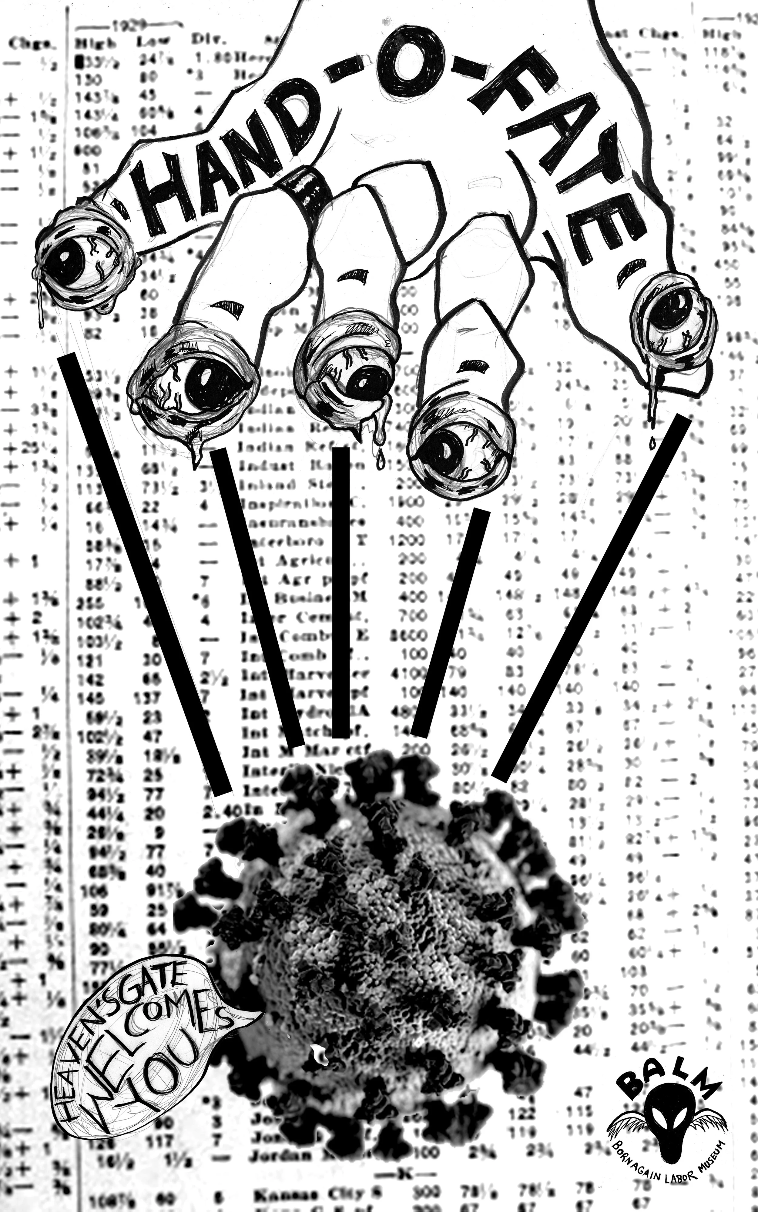 View fullsize Hand-O-Fate (After Emory Douglas) Born Again Labor Museum April 12, 2020 Drawing and digital collage (2020) - product of remote viewing. help build the gravedigger’s multiverse and support BALM